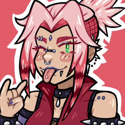 aesthetic: pinks and reds, roses, cherries, spikes, sakura petals, rock 'n' roll, "punk but pink", riot grrrl, punk in general